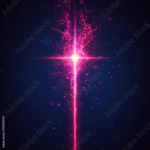 Radiant Cross of Light in a Cosmic Nebula with Glowing Particles and Deep Blue Background Space
