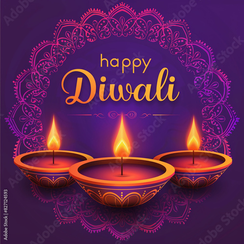 Radiant Diwali Greetings on a Royal Purple Backdrop