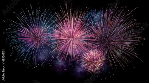 Radiant fireworks with colorful explosions on a dark backdrop, Celebration, dazzling night festivity