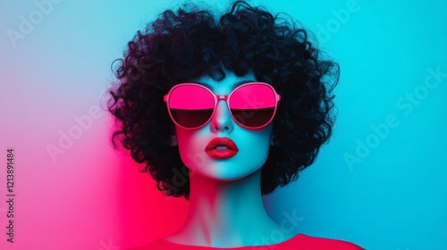 fashion, portrait, style, beauty, woman, afro, sunglasses, vogue, trend, model, glamour, high-coloured, face, red lips, colourful, trendy, stylish, aesthetic, bold, confidence, chic, design, elegance, vibrant, attractive, personality, charme, alluring, individuality, make-up, art, cool, modern, youthful, contemporary, pose, studio, expression, visual, artistic, beautiful, person, coiffure, eyewear, lip, skin, closeup