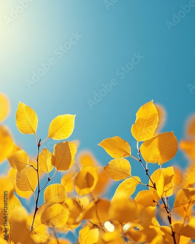 Radiant golden leaves against a serene azure sky capturing the essence of autumn in a tranquil scene