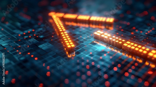 Radiant Metallic Arrow on Dark Grid - Emerging Business Concept in Technology