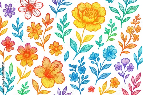 rainbow, flower, leaf, pattern, floral, design, colourful, vibrant, cheerful, spring, summer, nature, blossom, bloom, garden, botanical, decoration, seamless, wallpaper, textile, fabric, wrapping paper, greeting card, invitation, scrapbooking, pride, diversity, inclusion, love, peace, harmony, celebration, joy, happiness, beauty, art, illustration, drawing, graphic, white background, isolated, gradient, spectrum, flower petals, stem, foliage, decorative