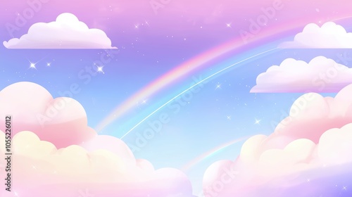 Radiant rainbow light streaming through fluffy clouds, filled with tiny sparkles, perfect for a fantasy-inspired scene