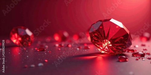 Radiant Red Gemstones A Sparkling Display of Luxurious Facets and Brilliant Shimmer on a Deep Crimson Surface