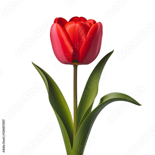 Radiant Red Tulip: A captivating close-up showcases a vibrant red tulip, its petals gracefully unfurling, set against a pristine backdrop, embodying the freshness and beauty of spring.