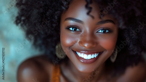 Radiant smile of African American woman, teeth whitening, dental hygiene
