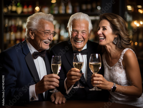 trio, toast, joy, connection, happiness, camaraderie, heartfelt, sharpness, warmth, atmosphere, surrounding, detail, ambience, expression, lighting, celebration, friendship, togetherness, elation, socialising, laughter, cheer, sparkling, oneness, appreciation, gratitude, commemoration, relationship, candid, authentic, blissful