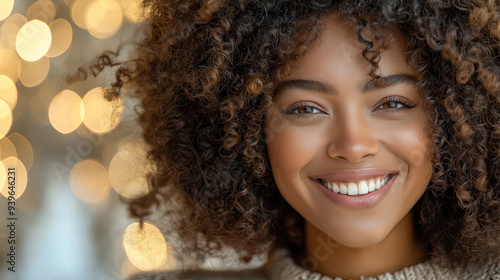 radiant, young, woman, curly, hair, sparkling, bokeh, background, smile, beautiful, joyful, happy, portrait, warm, glow, light, twinkle, fashion, beauty, natural, coiffure, skin, care, cheerful, afro, texture, feminine, fresh, lively, bright, face, youth, vibrant, positive, energetic, person, female, elegance, charme, lifestyle, content, genial, photogenic, aglow, gleeful