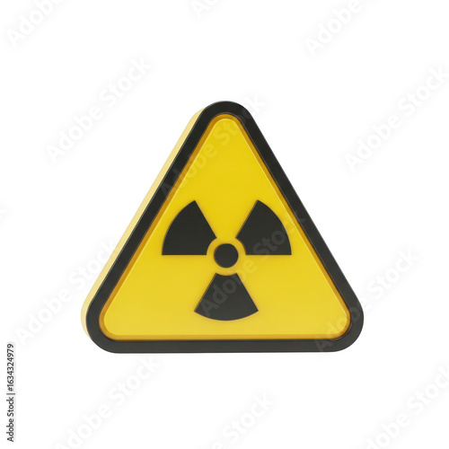 Radiation warning symbol on yellow triangle isolated on transparent background