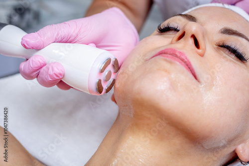 radiofrequency face lifting in a beauty salon