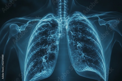 Radiographic representation of human lungs showcases intricate internal structures and details of respiratory system