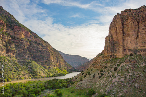 canyon, cliff, cloud, colorado, color image, day, dinosaur, eroded, geology, grass, horizontal, idylli, nature, nobody, outdoors, river, rock, rock formation, sky, travel destination, tree, us, water
