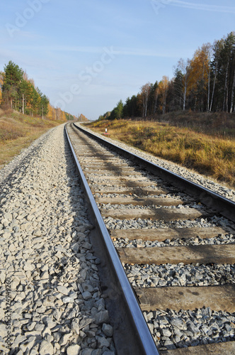 track, railroad, steel, train, perspective, way, outdoors, black, old, striped, concept, iron, curve, closeup, railway, line, lane, foreground, abstract, sky