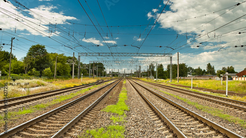 railway against the blue sky and clouds