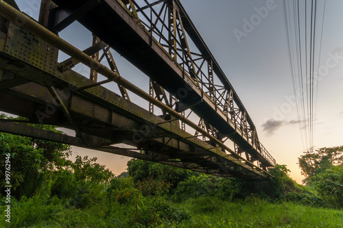 architecture, background, bridge, construction, horizon, landscape, metal, nature, rail, railway, river, sky, structure, sunset, thai, track, train, transport, transportation, view, water