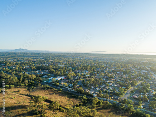 railway, line, outskirts, singleton, height, summer, morning, light, landscape, day, house, aerial, property, community, housing, house, neighbourhood, suburb, homeownership, neighboring, neighboring, drone, aerial photo