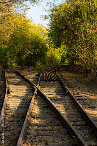 Railway tracks in the park area of ​​autumn Kharkov