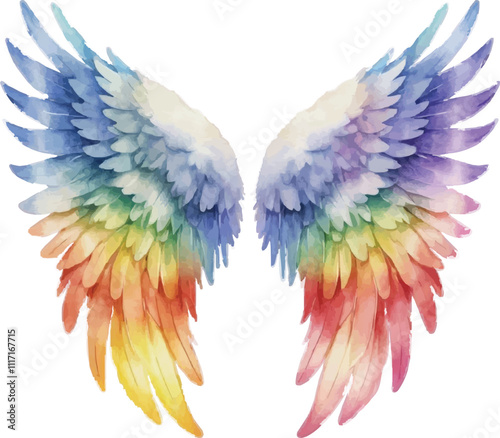 rainbow, angel, wing, watercolor, illustration, isolated, colourful, artistic, vibrant, aethereal, painting, abstract, soft, design, fantasy, pastel, dreamlike, heavenly, artwork, creative, delicate, magical, gradient, spectrum, spiritual, aglow, serene, decorative, celestial, graceful, many-coloured, winged, inspirational, unique, beauty, elegant, divine, bright, imaginative, handcraft, radiant, aesthetic, hand-painted