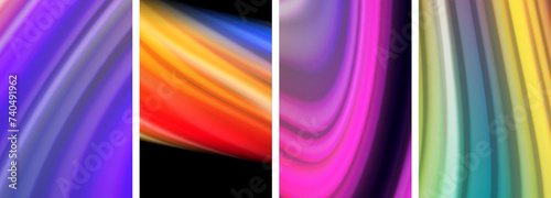 Rainbow color liquid. Wave lines poster set for wallpaper, business card, cover, poster, banner, brochure, header, website