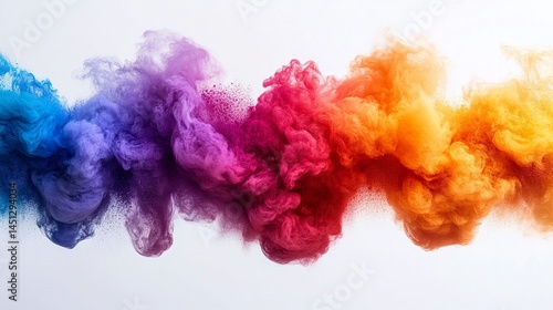 Rainbow explosion of dry pigment in the air for artistic or abstract concept white background