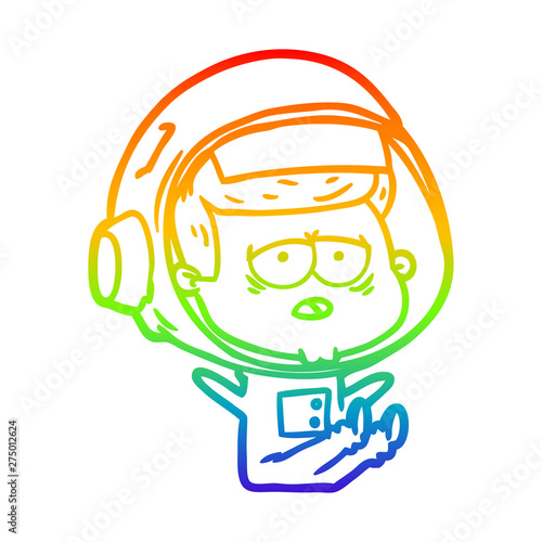 rainbow gradient line drawing cartoon tired astronaut