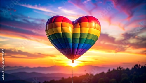 Rainbow Heart Hot Air Balloon at Sunset