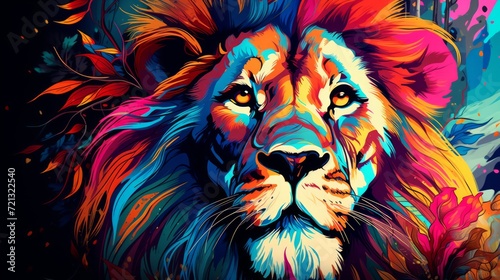 lion, colourful, creative, abstract, art, illustration, animal, rainbow, paint, texture, nature, concept, black background, colours, face, portrait, artwork, palette, saturated, brushstroke, head, many-coloured, vibrant, wild, big cat, neural, artificial intelligence
