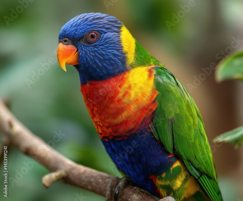 Rainbow Lorikeet, Trichoglossus haematodus, a colorful parrot perched on a branch