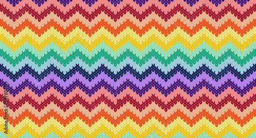 Rainbow zigzag knitting pattern, Festive Sweater Design. Seamless Knitted Pattern