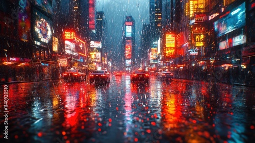 night, city, rain, wet, street, traffic, car, light, neon, bright, dark, reflections, urban, metropolis, modern, vibrant, energy, dynamic, atmosphere, moody, dramatic, glamour, gritty, new york city, city landscape, rainy, abstract, blur, bokeh