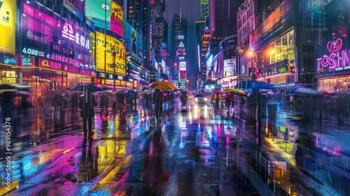 city, street, night, rain, wet, urban, light, neon, building, city landscape, asphalt, downtown, street light, wetness, illuminated, architecture, car, pedestrian, sidewalk, pavement, traffic, life, atmosphere, gloomy, dark, surface, drop, city landscape, night time, shiny, glowing, skyscraper, rainy, scene