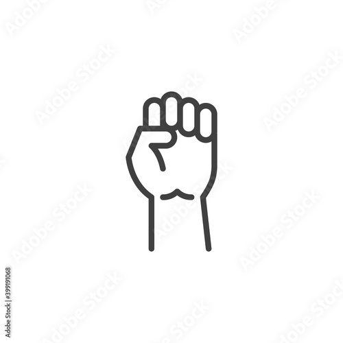 Raised fist line icon. linear style sign for mobile concept and web design. Hand raised up outline vector icon. Power and solidarity symbol, logo illustration. Vector graphics