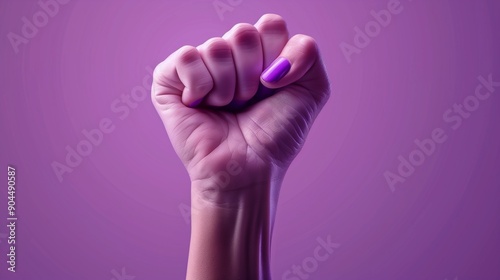 Raised purple fist of a woman for international women's day and the feminist movement. march 8 for feminism independence freedom empowerment and activism for women rights.