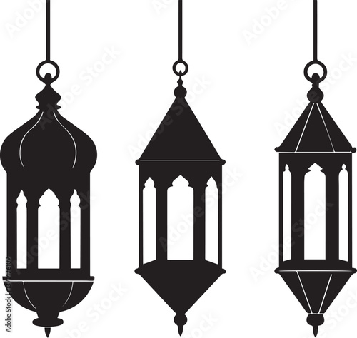 ramadan lantern silhouette vector illustration, islamic lantern silhouette vector black and white