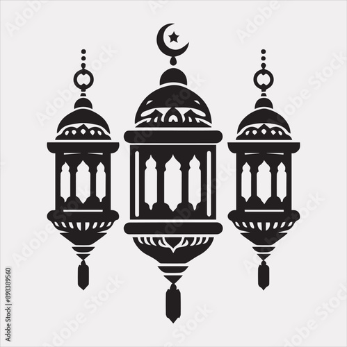 Ramadan lanterns silhouette simple and clean flat line art lamp on white background
