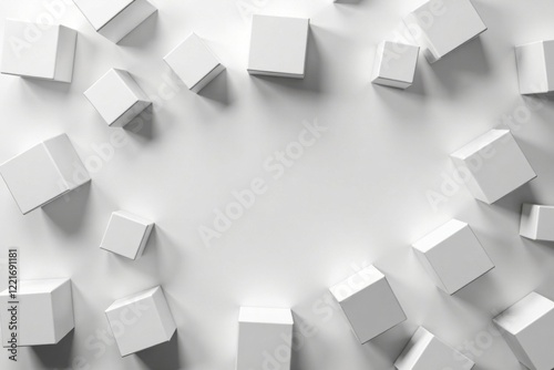 Randomly arranged white box blocks, abstract background, geometric patterns, cube shapes