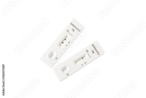 Rapid Covid-19 coronavirus strip test cassettes isolated on white background