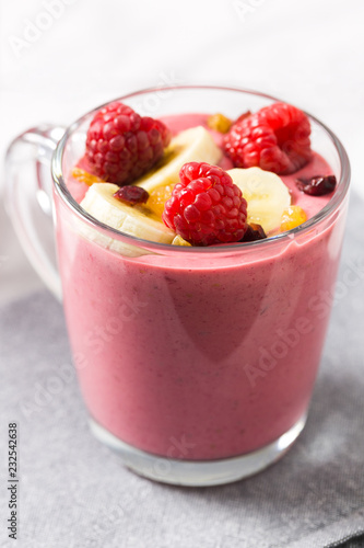 smoothie, raspberry, breakfast, berry, banana, raw, food, delicious, pink, mug, healthy, glasses, fruit, drink