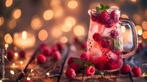 raspberry, drink, beverage, pitcher, glasses, ice, mint, fruit, cold, fresh, summer, table, wood, light, bokeh, festive, night, holiday, party, celebration, background, red, healthy, sweet, tasty, refreshment, juicy, natural, delicious, vibrant, ingredient, meal, produce, closeup, still, life, indoor, deliciously, dessert, bright, rustic, wooden, illuminated, sparkling, season, arrangement, treat, texture, nobody