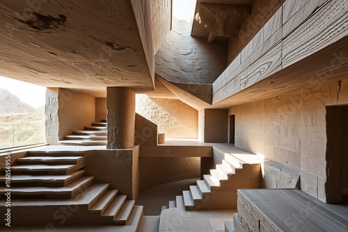 Raw Architectural Space with Natural Stone Textures and Geometric Design.generative AI