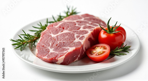 meat, food, beef, steak, raw, pork meat, dinner, meal, fresh, plate, vegetable, grilled, red, white, salad, tomatoes, roast, fillet, roasted, dish, isolated, cookery, vegetable, bar-b-q, green