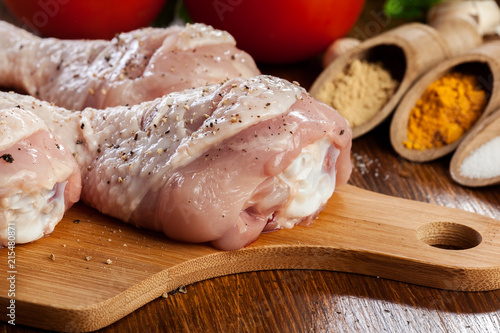 Raw chicken legs with spices