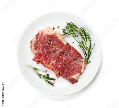 steak, beef, meat, raw, food, plate, isolated, bar-b-q, grill, fillet, roast, cooking, grilled, rib, frying, fries, background, dinner, bar-b-q, red, white, meal, fresh, hot, juicy, pepper, salt, rosemary, sirloin, cooked, epicure, herb, cookery, nobody, roasted, top, up high