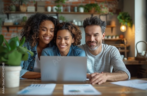 Real estate agent discusses home options with a young couple in a cozy office setting