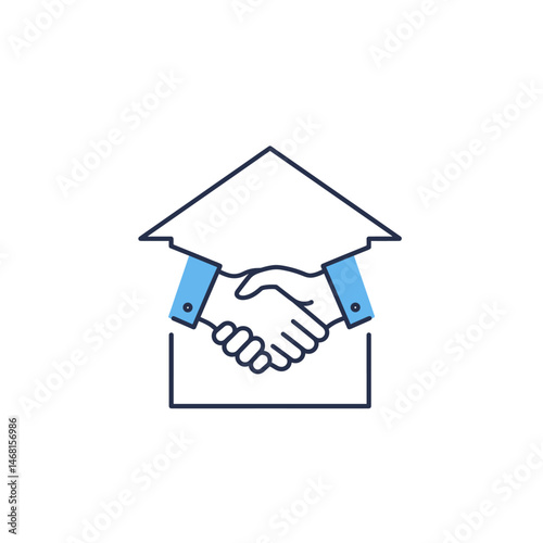 real estate, deal, handshake, house, agreements, contract, business, property, home, partnership, icon, symbol, mortgage, investment, sale, purchase, agent, broker, success, trust, finance, closing, graphic, illustration, vector, blue, line art, simple, concept, ownership, housing, market, transaction, support, secure