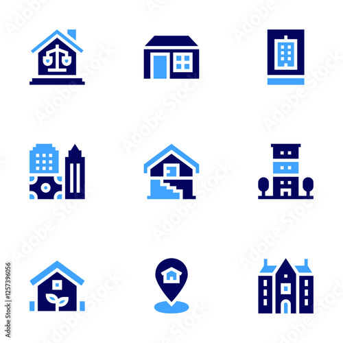 Real estate icon set. Bold style. Duotone colors. house, real estate, basement, condominium, eco house, location, mansion