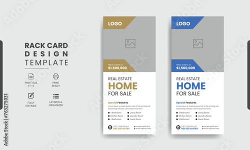 Real estate rack business rack card template design, Creative modern corporate real estate agency rack card or dl flyer template design