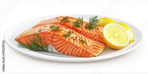 Realistic 3D Icon Cartoon of A Plate of Smoked Salmon with Lemon and Dill