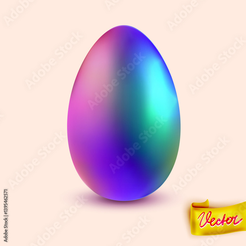 Realistic 3D illustration of a colorful gradient egg with smooth holographic texture on a soft pastel background. Ideal for Easter, spring, and festive creative projects.